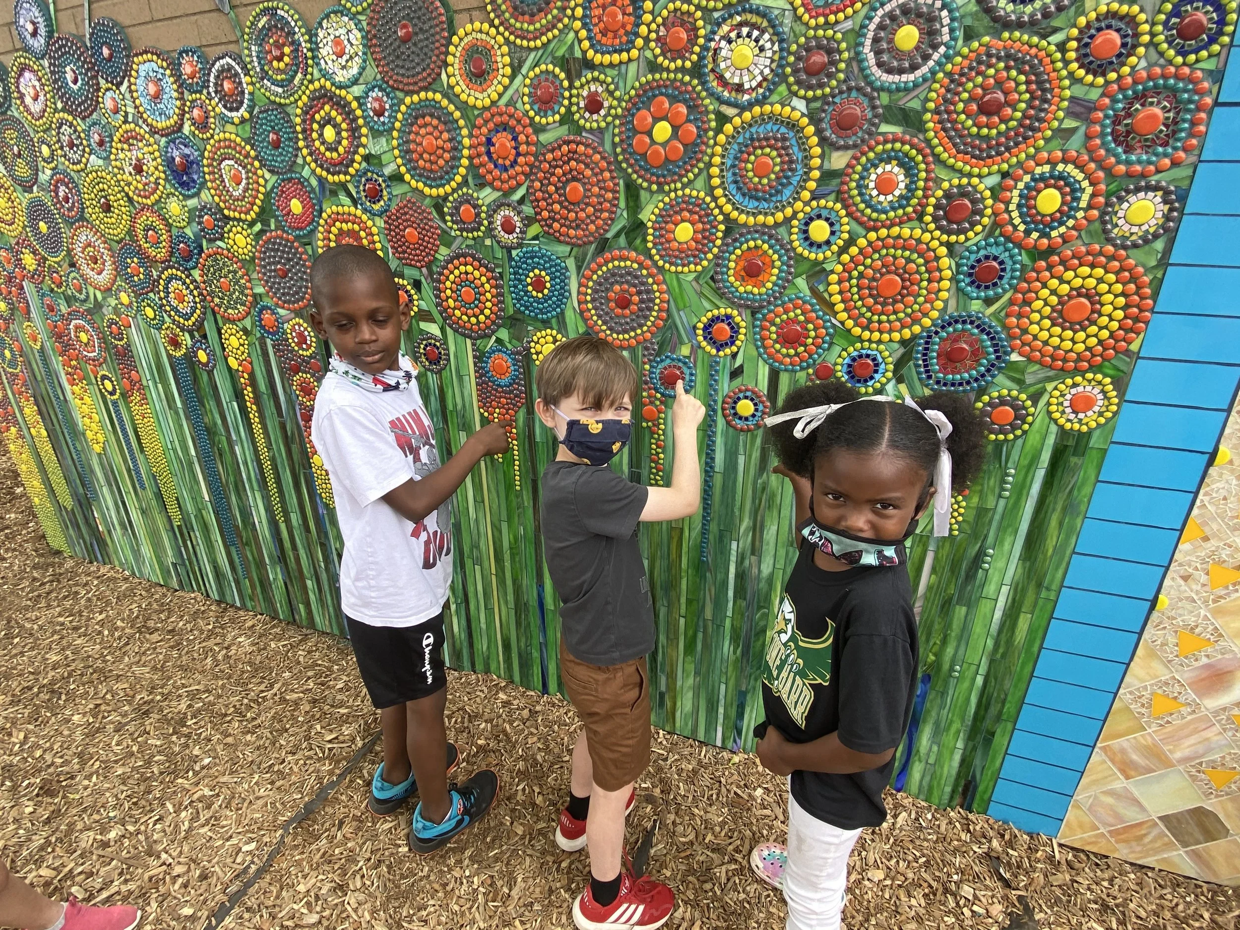 Kids Educational Art Project sponsored by Arts in Stark | Stained glass, glass gems | 32’ x 10’