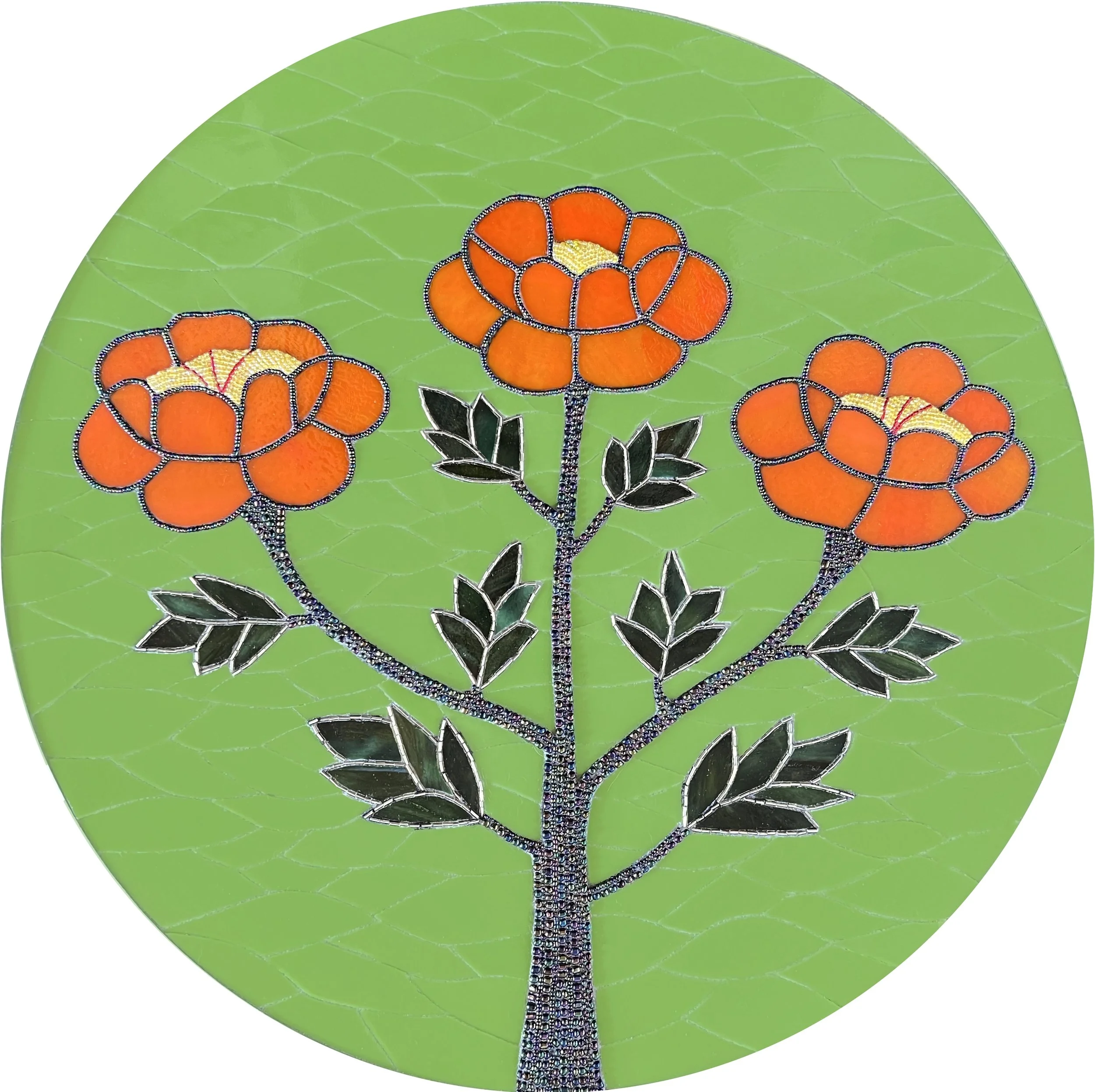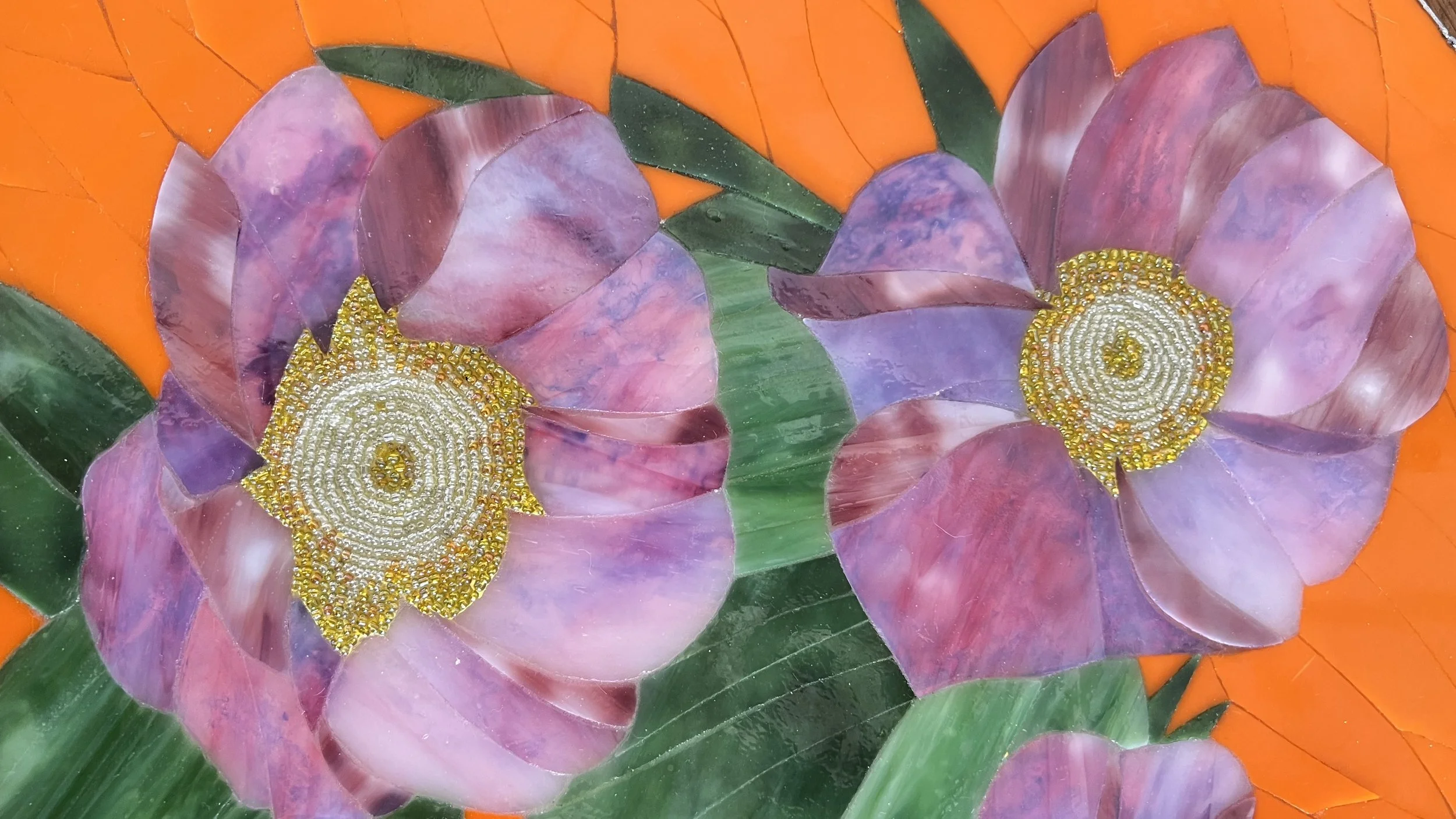 Summer II: This is a mosaic version of another one of Ida’s gorgeous beadworks, using stained glass and beads.