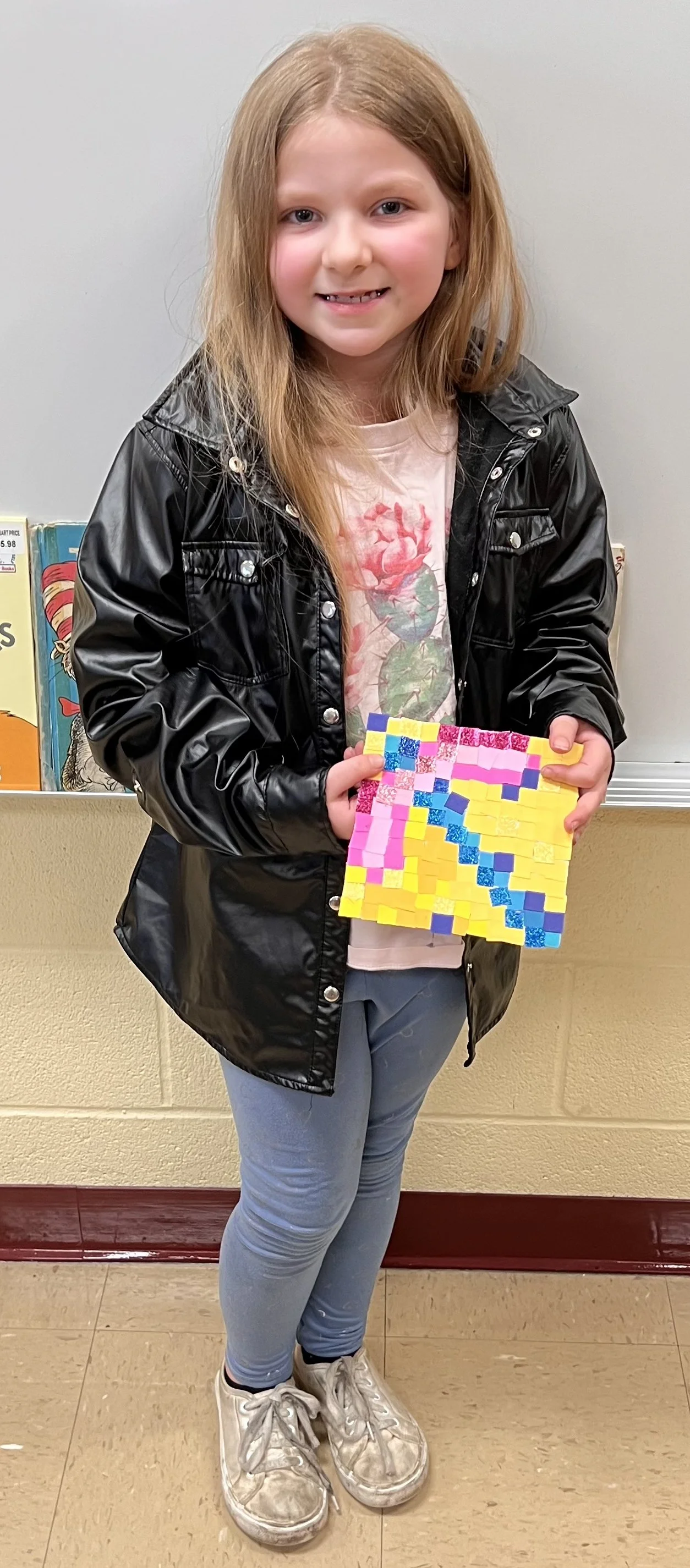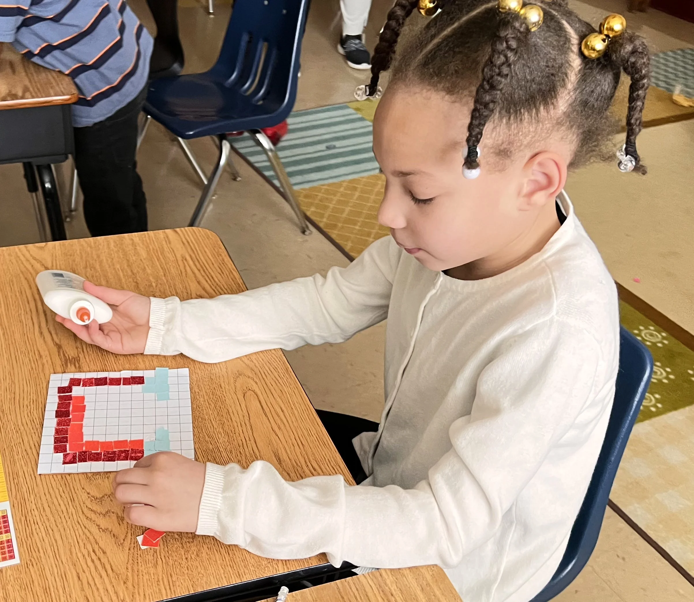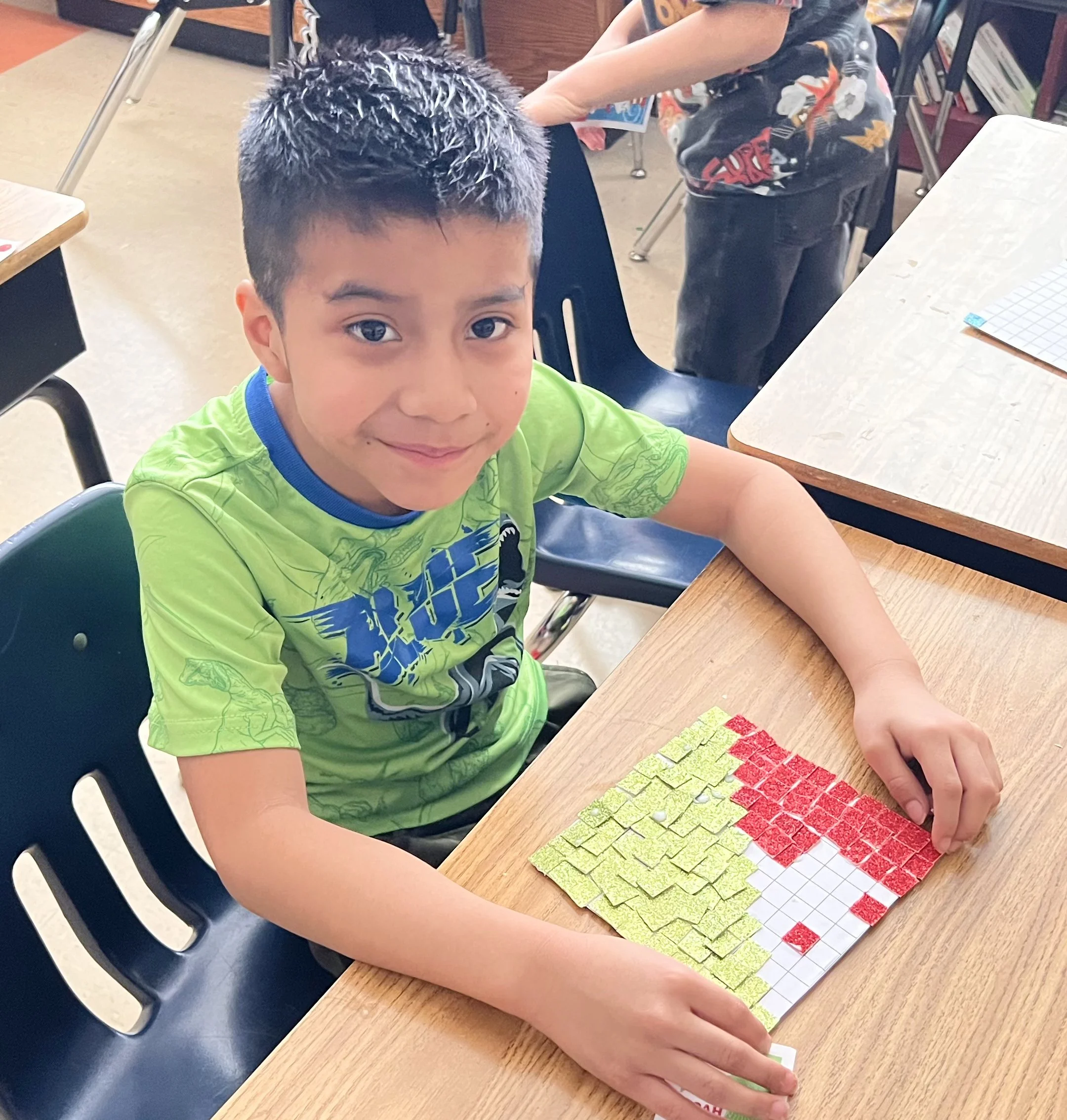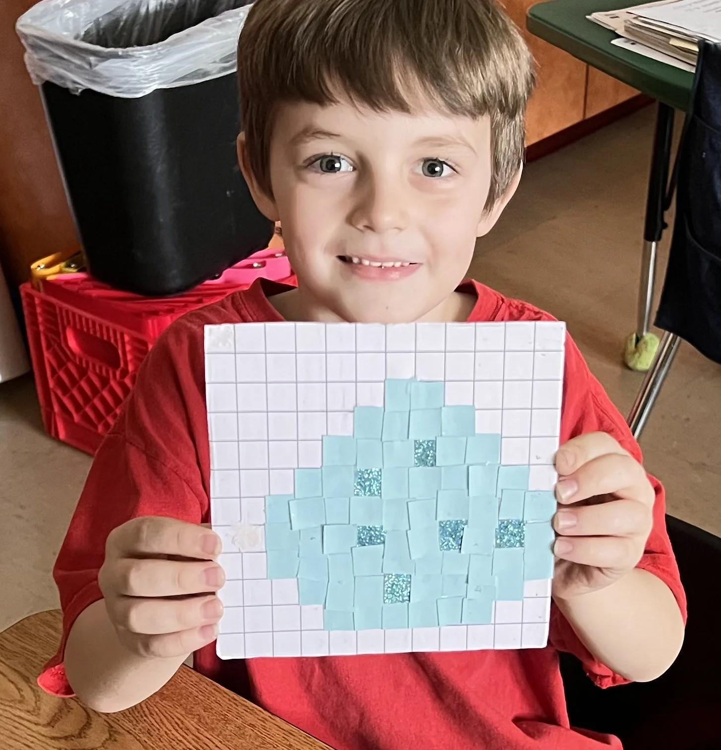 These math whizzes worked so hard and had a lot of fun solving math problems to create their own 6” square tiles of various designs. They all made Minecraft picks to learn how to do the project, then various other designs, and finally they got to go crazy and make their own designs. Their own designs were amazing!