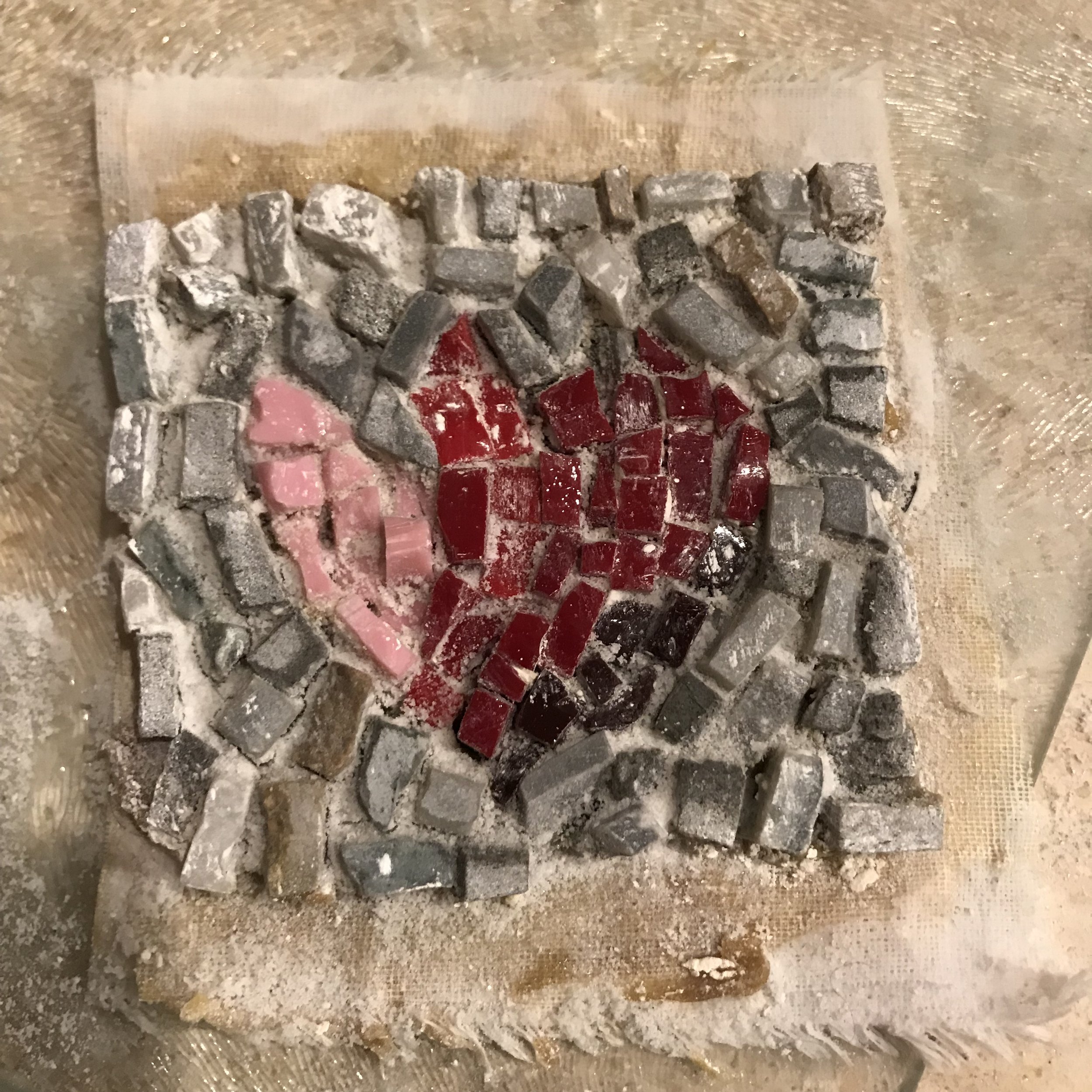 Once the glue was dry, I flipped over the mosaic and cleaned off the lime putty.
