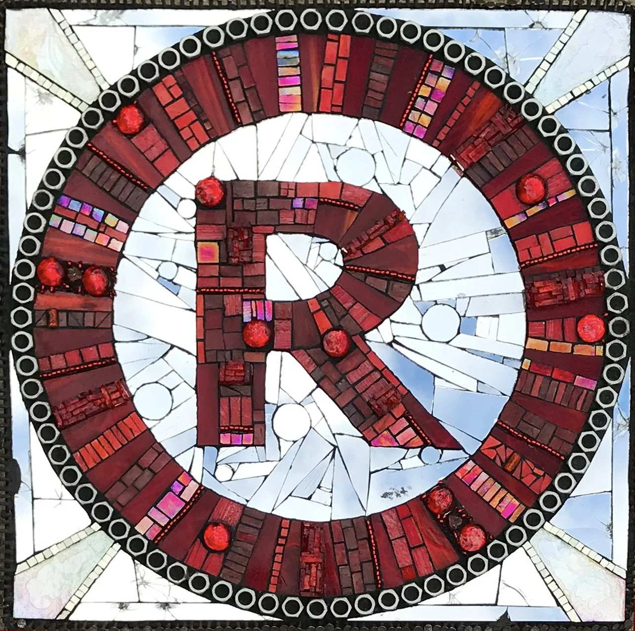 Registered Trademark was originally intended to be a sculptural piece. It was a padlock and was going to hang from barbed wire. Once I decided not to move forward with the series, I cut the front off the structure and finished the edges as a hanging mosaic.