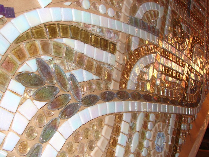 I created this mosaic before the actual spa was built, so I had to put the builder’s measurements into a CAD program to make sure the glass would fit once it was built.