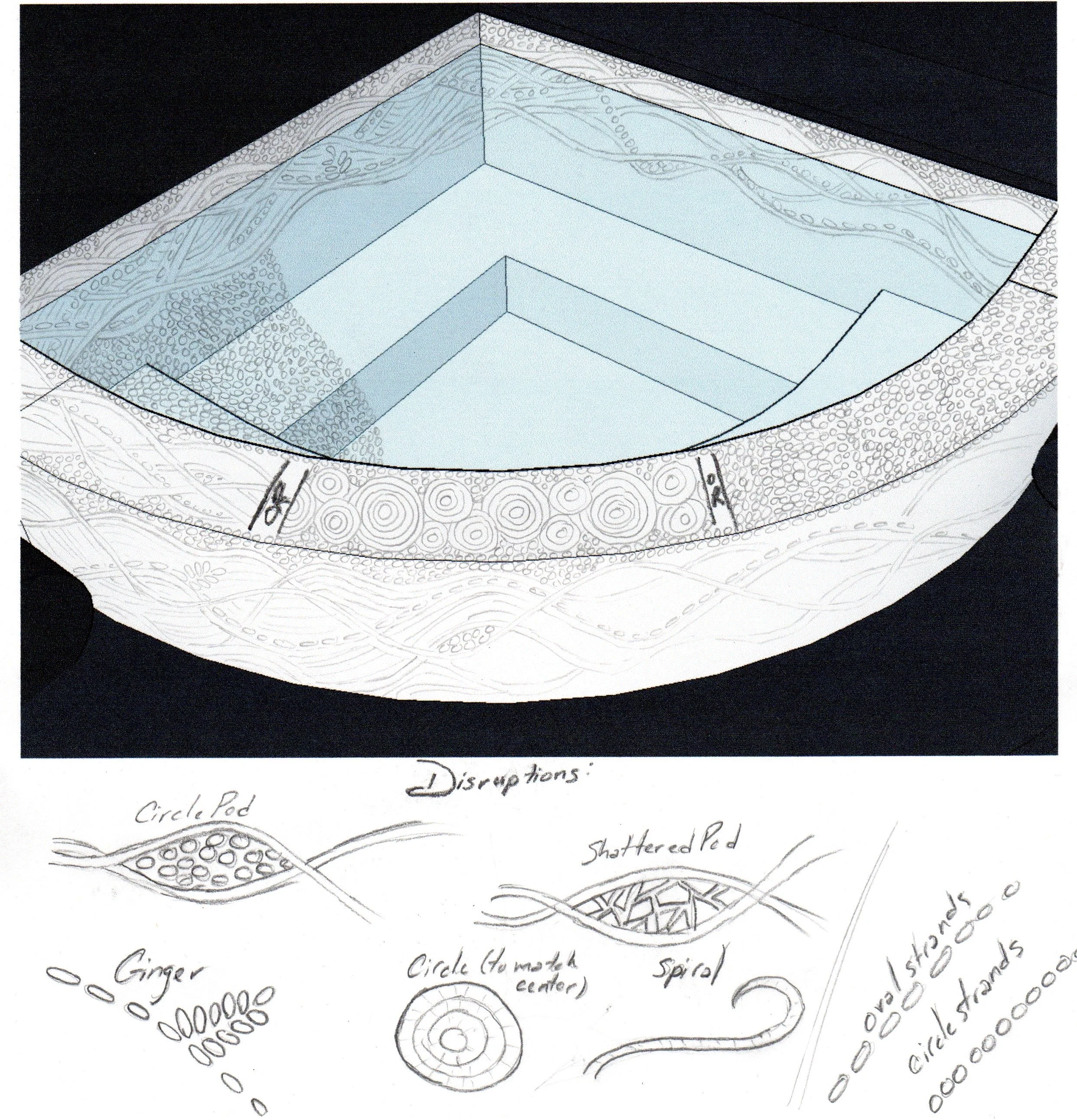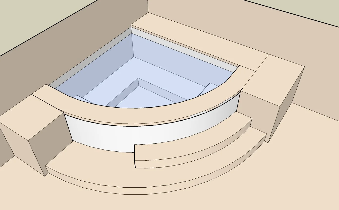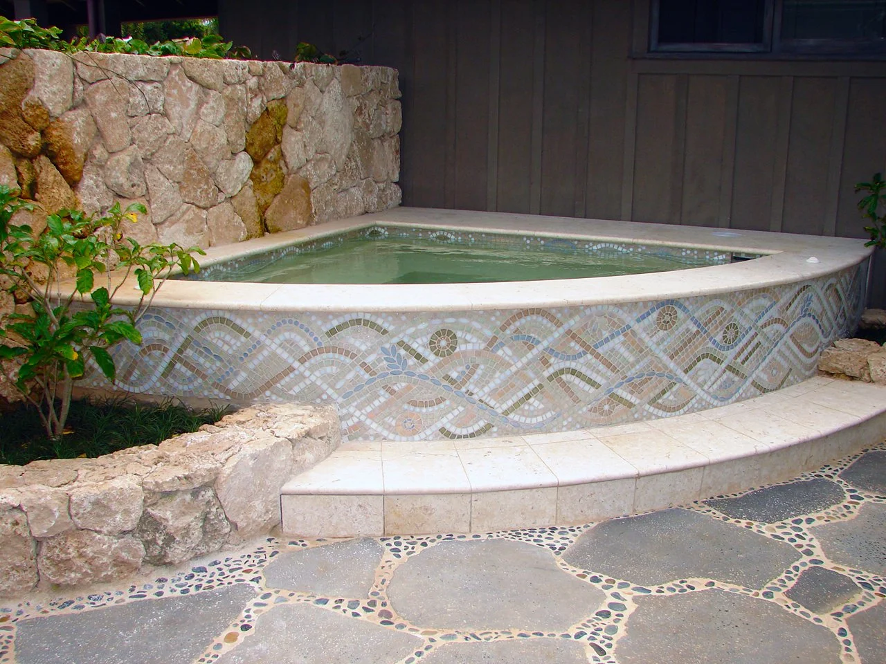 Originally the mosaic was going to cover the whole spa, but because of concerns about the surface being slippery, she requested I just mosaic the sides and an interior wave. They would top the spa with stone. These were the options for the original design.