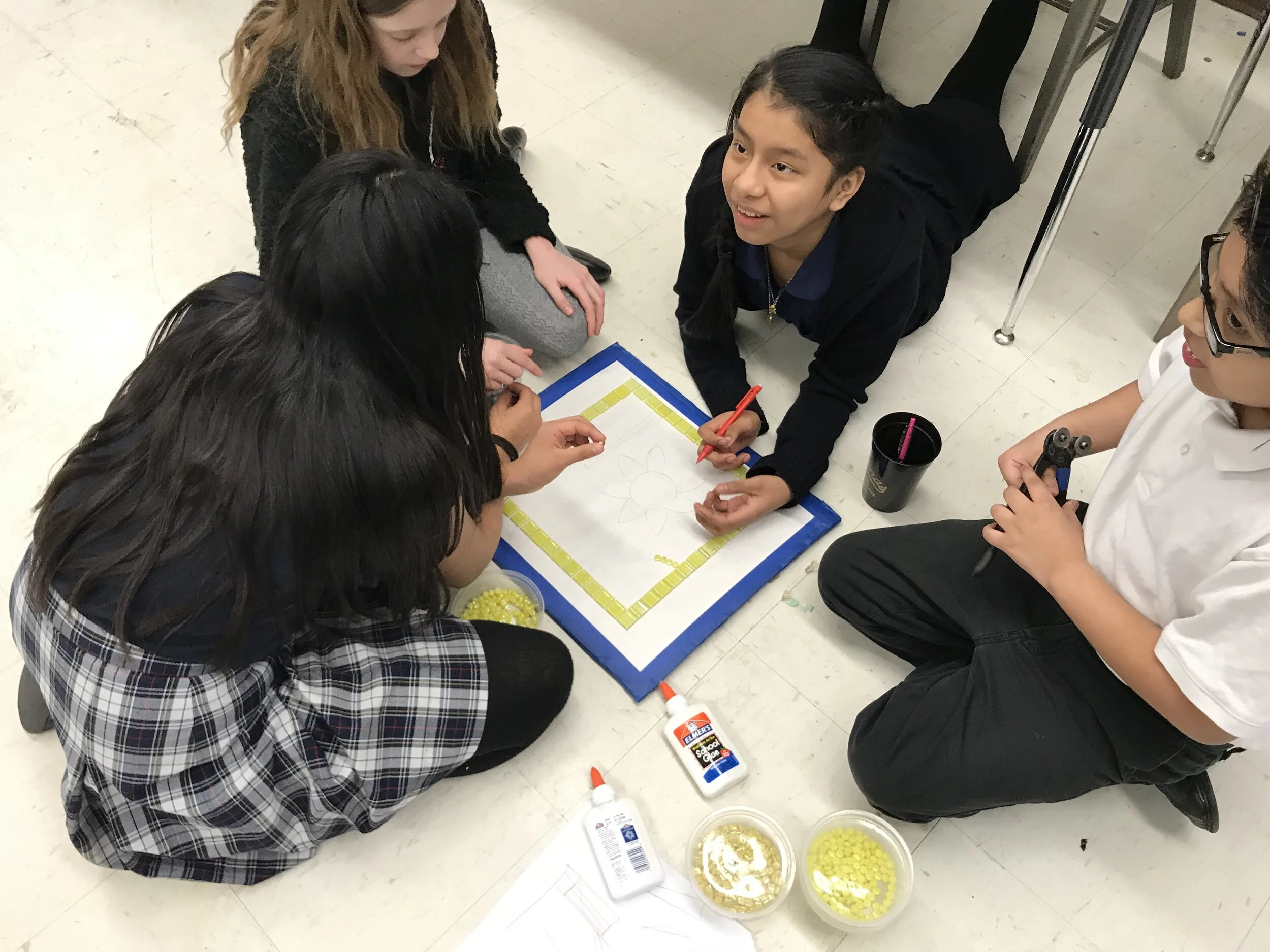 Kids Educational Art Project sponsored by Arts in Stark | Glass tile, stained glass, mirror, glass gems | 3’ x 5’